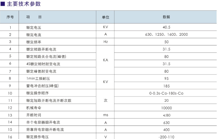 本產(chǎn)品性能符合國(guó)家標(biāo)準(zhǔn)GB1984《交流高壓斷路器》及JB3855《3.6-40.5kV戶內(nèi)交流高壓真空斷路器》等標(biāo)準(zhǔn)的規(guī)定。