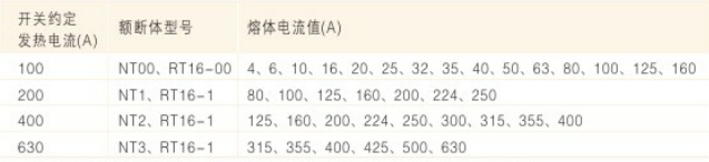 8.開(kāi)關(guān)與熔斷體配用關(guān)系(見(jiàn)表3)