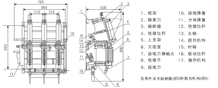 該型高壓真空負(fù)荷開關(guān)及組合電器,適用于三相交流10kV、50Hz的電力系統(tǒng)中,或與成套配電設(shè)備及環(huán)網(wǎng)開關(guān)柜,組合式變站等配套使用,廣泛用于城網(wǎng)建設(shè)改造工程、工礦企業(yè)、高層建筑和公共設(shè)施等,可作為環(huán)網(wǎng)供電或終端,起著電能的分配、控制和保護(hù)作用。該產(chǎn)品技術(shù)性能符合IEC出版物60265-1/FDIS《高壓負(fù)荷開關(guān),第一部分:額定電壓1kV以上52kV以下的高壓負(fù)荷開關(guān)》、IEC20420《高壓交流負(fù)荷開關(guān)-熔斷器組合電器》、GB16926《交流高壓負(fù)荷開關(guān)-熔斷器組合電器》、GB3804~63kV《交流高壓負(fù)荷開關(guān)》的規(guī)定。 本產(chǎn)品具有一開斷能力大、安全可靠、電壽命長、可頻繁操作、結(jié)構(gòu)緊湊、體積小、重量輕、基本不需要維修等優(yōu)點。具有開斷額定電流、過載電流(FZN21-12DR/T125-31.5)可開斷短路電流和防止設(shè)備缺相動行能力,開關(guān)有明顯可見的隔離斷口,配裝具有關(guān)合能力的接開關(guān)及電動彈簧機構(gòu),能夠遠(yuǎn)動遠(yuǎn)控。 |