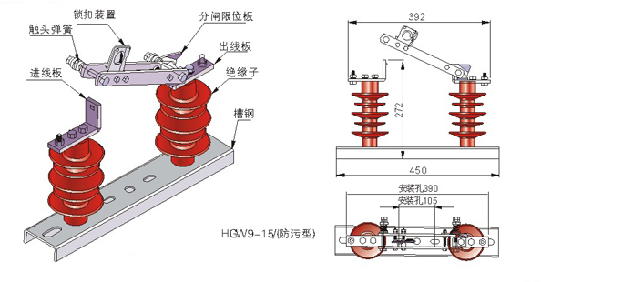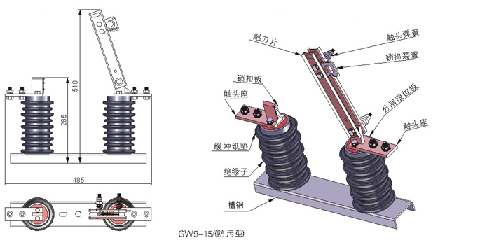 1)本產(chǎn)品為三相線路系統(tǒng)單相使用,結(jié)構(gòu)簡(jiǎn)單、經(jīng)濟(jì)、使用方便。 2)笨產(chǎn)品為單斷口垂直打開(kāi)式結(jié)構(gòu),單極隔離開(kāi)關(guān)支柱絕緣子安裝在各自底架上,主要由底座、支柱絕緣子、主導(dǎo)電回路部分、自鎖裝置等組成。采用閘刀式結(jié)構(gòu)分合閘達(dá)到切斷和閉合線路,每相閘刀由兩片導(dǎo)電刀片組成,刀片兩側(cè)外裝有壓縮彈簧,調(diào)節(jié)彈簧的高度可以得到開(kāi)關(guān)閘刀所需要的接觸壓力。開(kāi)關(guān)分合閘時(shí)用絕緣構(gòu)棒操作機(jī)構(gòu)部分,閘刀有自鎖裝置。 |