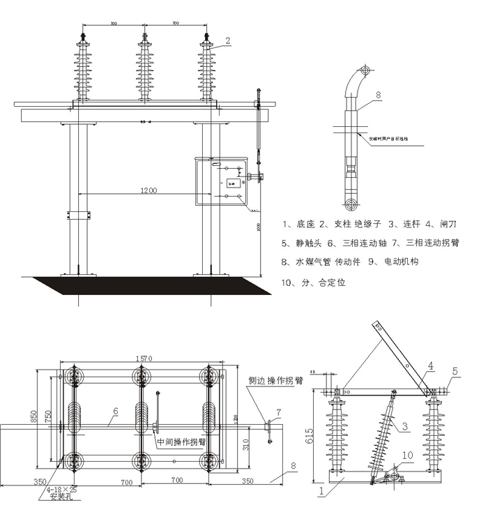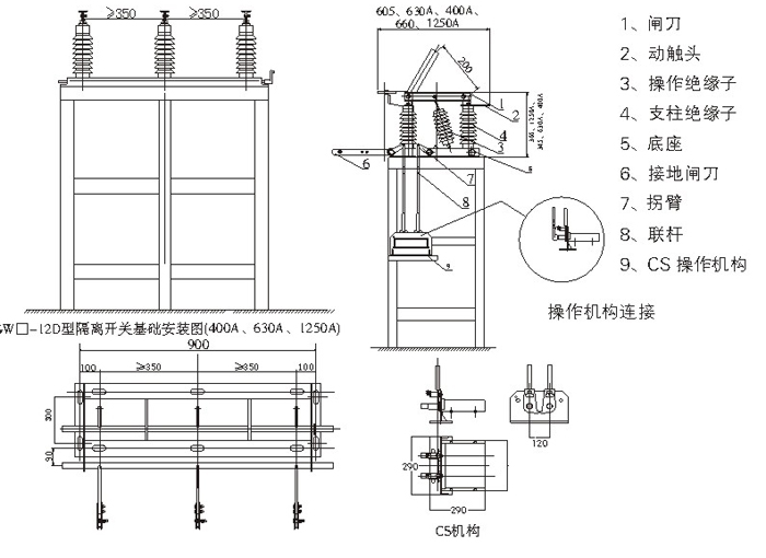 | GW□-15、40.5kV系列戶外高壓隔離開關,為單極結構的高壓開關設備,在戶外15KV、40.5kV線路網絡中有電壓無負載情況下分、合電路之用,帶接地刀的開關,配用CS型手動機構,可防止帶電接地和帶接地線“合閘”等誤操作,操作人員也不必再另掛地線。其中防污型戶外高壓隔離開關可滿足嚴重污染地區(qū)用戶的要求,可以有效地解決隔離開關在運行中出現(xiàn)的污閃問題。 | |||||||||||||||||||