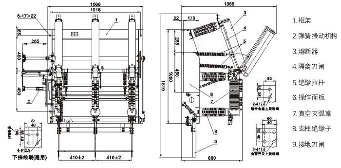 FZ(R)N21-40.5(D)/50-20型戶(hù)內(nèi)高壓交流真空負(fù)荷開(kāi)關(guān)(熔斷器組合電器)適用于額定電壓40.5kV三相交流50Hz的供電網(wǎng)絡(luò)中,作為開(kāi)斷負(fù)荷電流、過(guò)載電流及短路電流之用。尤其適用于無(wú)油化,不栓修及頻繁操作要求的場(chǎng)所。