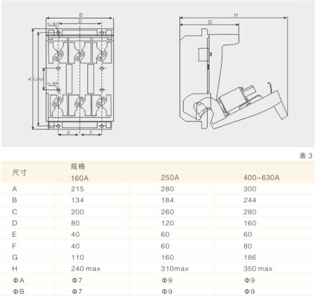 外形及安裝尺寸(見圖1、表3)